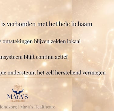Het behandelen van de mond is essentieel, maar soms niet voldoende als de oorzaak dieper ligt. Wanneer het lichaam uit balans is, blijft het immuunsysteem reageren.
