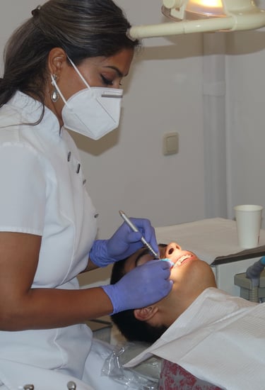 Gebitsdiagnostiek en controle Onder andere het bekijken en inspecteren van het gebit op afwijkingen zoals onder andere, gaatjes, teruggetrokken tandvlees, aanhechtingverlies, tandvlees ontsteking, afwijking aan het mondslijmvlies, klem/knarsgedrag, overmatig slijtage, beoordelen van röntgenfoto’s, esthetische intake, en verwijzen naar andere specialisten indien nodig. Samenwerking met andere mondzorg professionals staat centraal