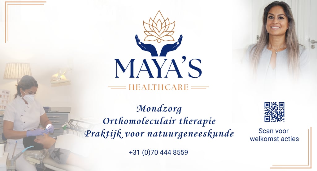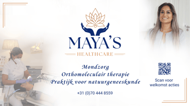 Welkom bij Maya’s Healthcare! Praktijk voor natuurgeneeskunde en praktijk voor Mondzorg. In mijn praktijk help ik je om je gezonder, energieker en meer in balans te voelen. Of het nu gaat om je mondgezondheid, een detox, ademhaling of gewoon wat extra rust in je hoofd – alles hangt met elkaar samen. Ik kijk naar het geheel en werk samen met jou aan echte, blijvende verbetering. Gezond van binnen, stralend van buiten!